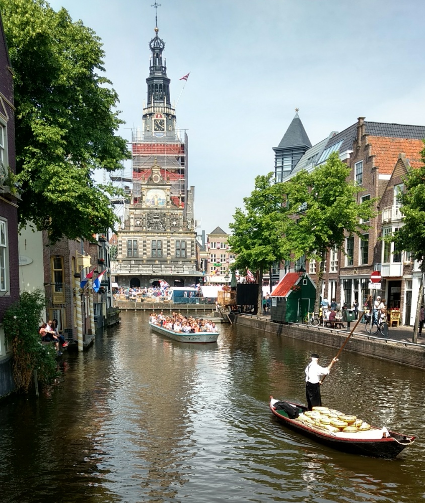 Am Mittwoch ging’s weiter nach Alkmaar, eine mittelgroße Stadt nördlich von Amsterdam, typisch holländisch mit vielen Grachten und hübschen Häusern. Gestern war Schoppen angesagt. Heute ging’s auf den Käsemarkt (immer Freitags von 10:00 – 13:00 Uhr) und Bummeln in kleinen Seitenstraßen mit netten kleinen Läden.