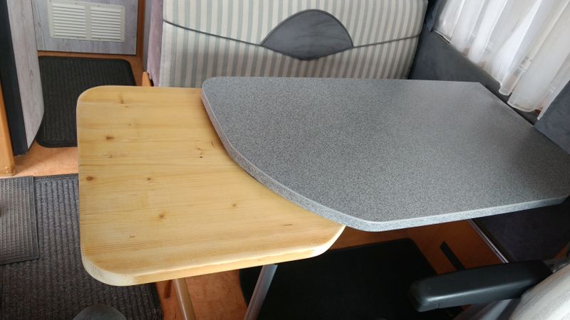 Bis wir wieder los können muss ich was am Womo basteln! Schon lange geht mir die Konstruktion einer ausdrehbaren Tischverlängerung durch den Kopf. Hierfür gibt es spezielle Tischfüsse. Die sind mir aber zu teuer! Für 17,- € habe ich einen Drehbeschlag aus Kunststoff, Tragkraft 200 kg, mit einem Durchmesser von 280 mm gefunden. Die Tischplatte … Weiterlesen ausdrehbare Tischverlängerung