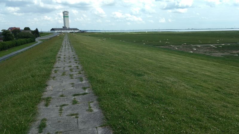 Als wir in Wobbenbüll nach links auf den Damm Richtung Nordstrand abbiegen, bleibt plötzlich die Zeit stehen. Links die Salzwiesen, rechts das Watt und geradeaus so weit das Auge reicht plattes Land, hier gibt’s keinen Touri Trubel.