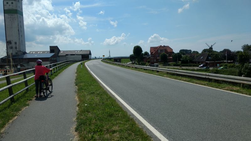 Der kleine Campingplatz Margarethenruh ist schlicht und einfach, eher ein kleiner Stellplatz. Er liegt direkt hinterm Deich in Süderhafen, nebenan ist ein Imbiss, eine Gaststätte und eine Mühle mit einem Café. Wir stehen neben einer großen Weide, der Baumschatten ist total angenehm!