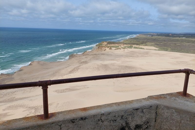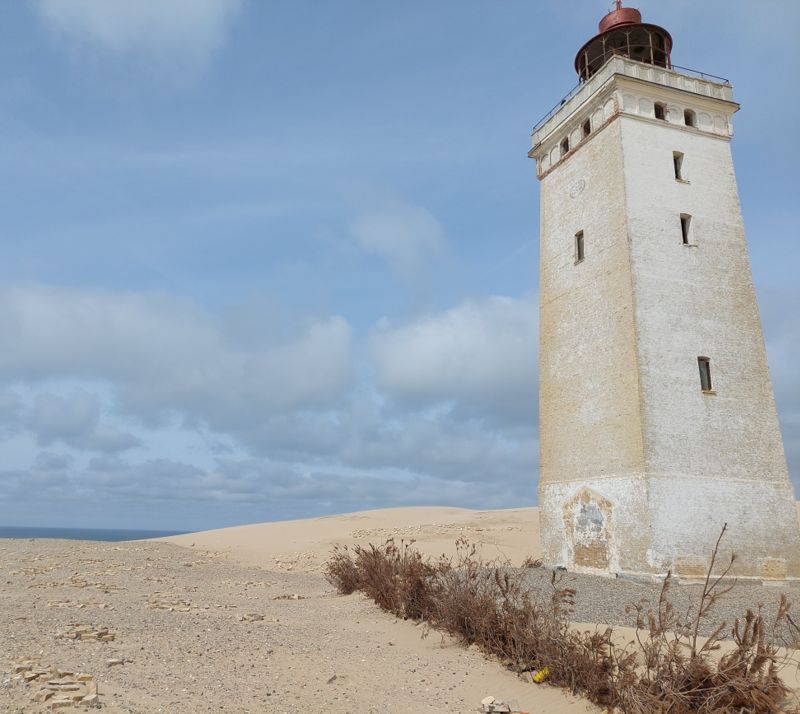 Eigentlich wollten wir länger bleiben, aber morgen geht’s weiter. Deshalb bin ich dann noch zum Leuchtturm Rubjerg Knude Fyr, der vor ein paar Jahren um 70 m ins Landesinnere verschoben wurde, geradelt. Sabine ist nicht mit, und das war auch gut so. Der Weg dort hin und der Aufstieg in den Dünen ist bei Windstärke 8 bis 9 nicht ganz unbeschwerlich.