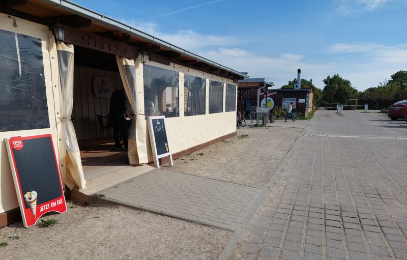 Das Bistro haben wir auch gleich ausprobiert. Es gab Dorsch mit Bratkartoffeln, eine glatte 3, für einen Campingplatz ganz ok!