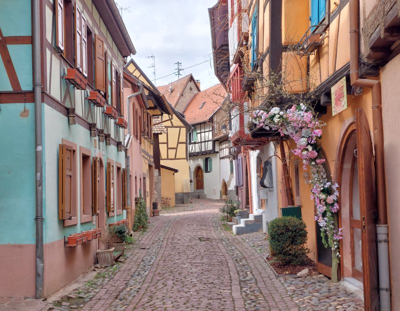 Es geht nach Eguisheim. Auf dem Weg liegt in Colmar ein E'Leclerc. Der Stellplatz Eguisheim liegt unmittelbar an der Zufahrt zur Altstadt. Die Altstadt von Eguisheim soll eine der schönsten im Elsass sein, zum Glück ist jetzt noch nichts los. Und die Störche sind fleißig. Heute wird gekocht.