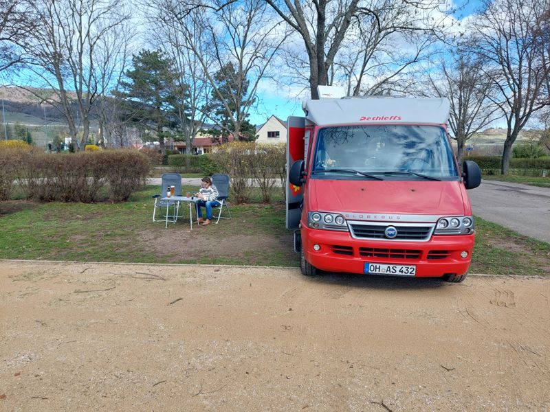 Wir landen in Ribeauvillé auf dem Municipal Campingplatz Pierre de Coubertin mit einer tollen freundlichen Begrüßung. Der Platz hat Heute die Saison eröffnet, wir sind das 2. Womo. Es findet gerade eine kleine Eröffnungsfeier mit den Honoratioren der Gemeinde statt. Der Platz ist einfach, hat aber alles was man braucht und die Stellplätze sind recht groß.