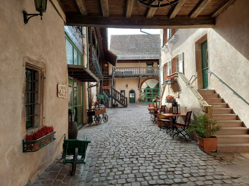 Heute geht’s mit den Rädern durch die Weinberge zum nächsten Dorf Bergheim.