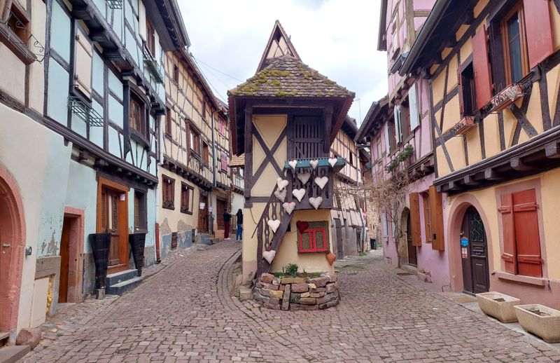 Die Altstadt von Eguisheim soll eine der schönsten im Elsass sein, zum Glück ist jetzt noch nichts los.