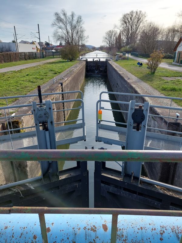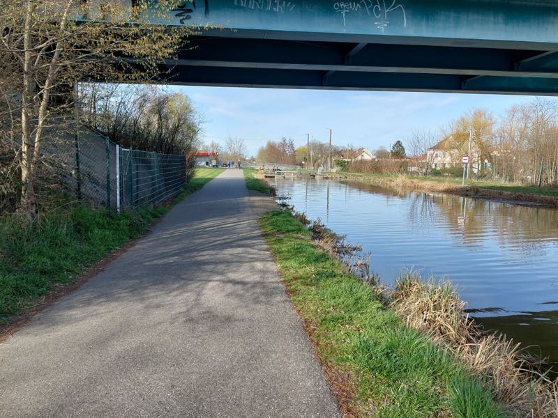 Zurück zum Campingplatz geht’s am Rhein-Rhône-Kanal entlang, auf dem Eurovelo 6.