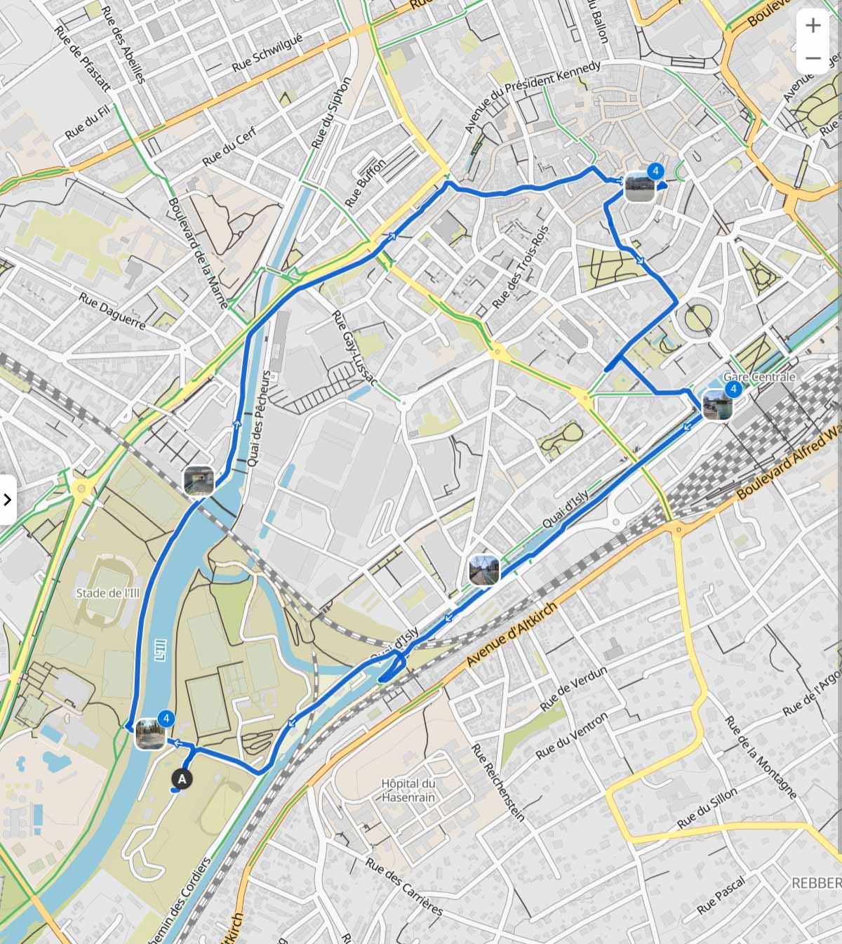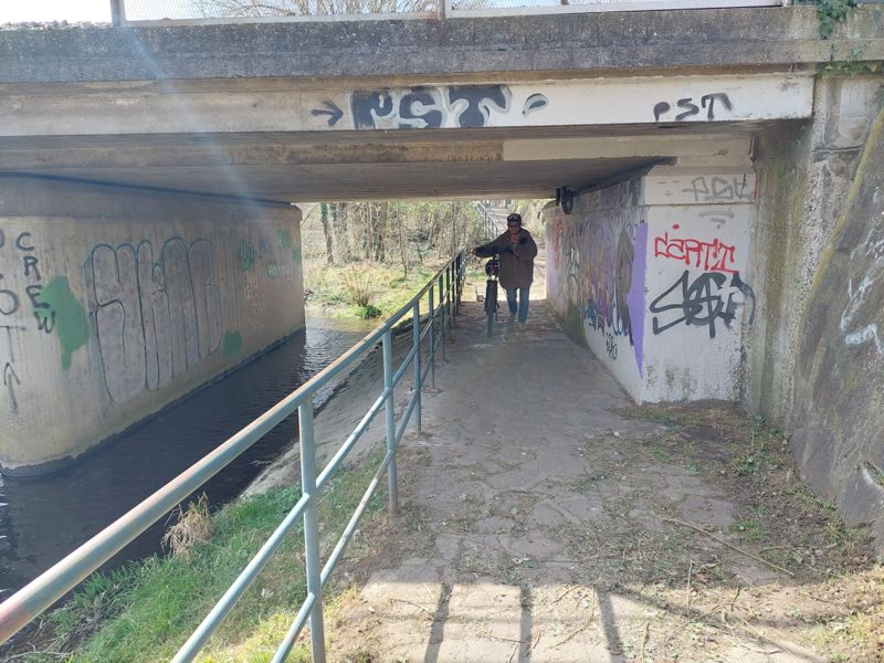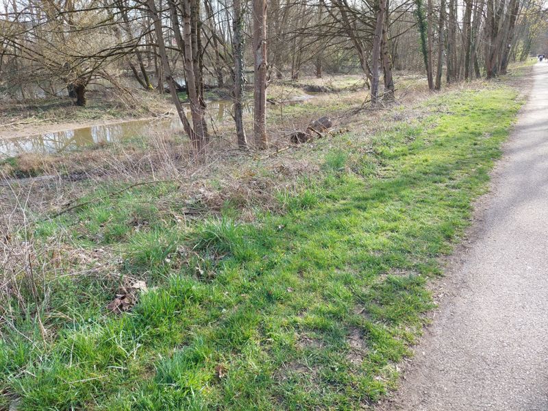 Wir radeln in die City. Auf der Hintour geht’s entlang der Ill.
