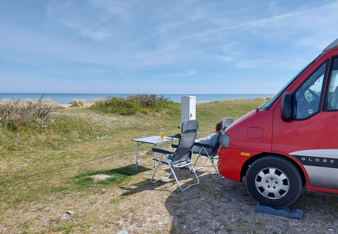 Auf unserem Lieblingscampingplatz Ahoi Camp auf Fehmarn haben wir früher immer die Dauercamper in der ersten Reihe direkt am Dünenstrand beneidet. Jetzt haben die neuen Besitzer sie nach hinten verbannt, die ersten drei Reihen stehen nur noch den Tagesgästen zur Verfügung.