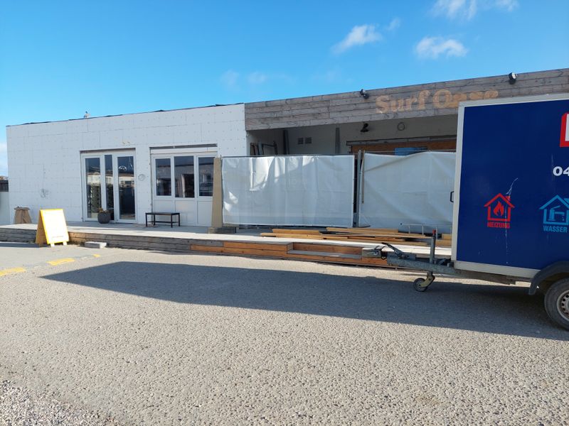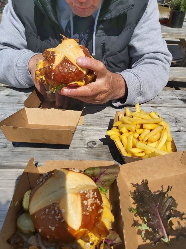 Die Gaststätte wird derzeit noch umgebaut, es gibt lecker Burger aus dem Foodtruck. Danach geht’s zum Womo, Siesta und die Aussicht genießen.