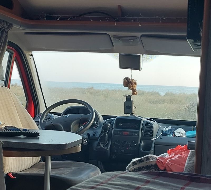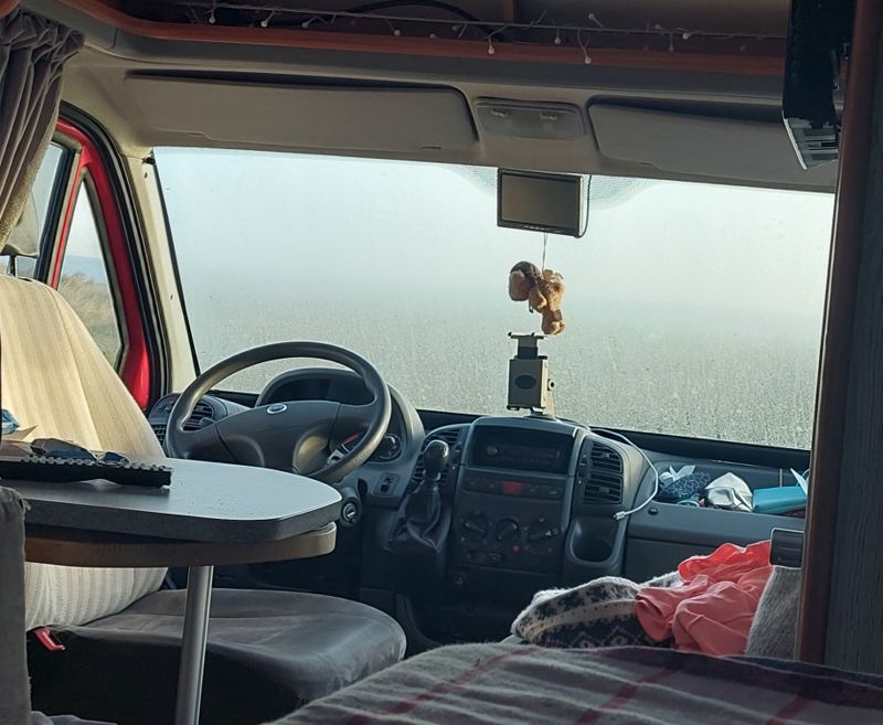 Kein Durchblick: die Frontscheibe ist beschlagen, ich kann aus dem Bett nicht auf’s Wasser schauen! – Einkuscheln und noch ein Bisschen dösen, dann geht’s!