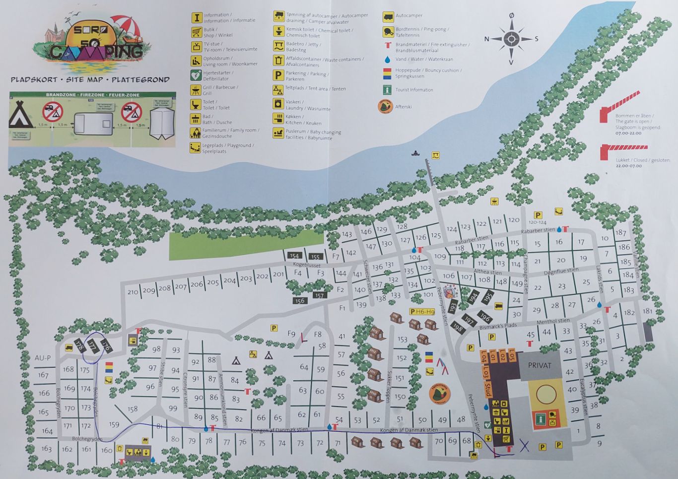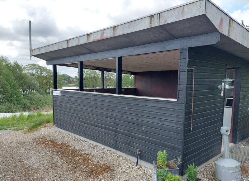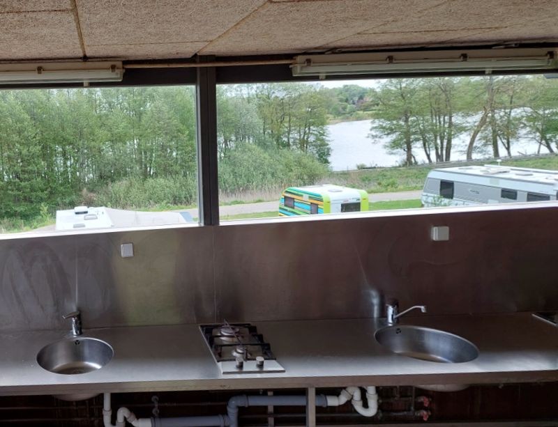 Er liegt an einem See, ist terrassenförmig angelegt und hat einen kleinen Laden mit Snacks und Brötchen.