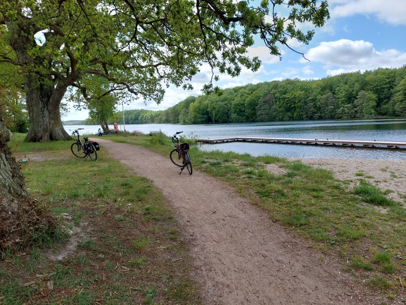 Und tatsächlich, hier ist es wesentlich windstiller. Wir radeln am Ufer des Sorø So entlang.