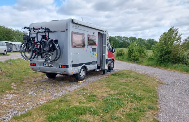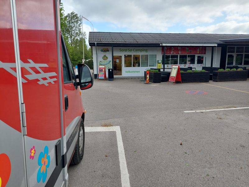Nachts hat es ordentlich gestürmt, das Womo hat ganz schön gewackelt. Und es soll heute erst im Laufe des Tages etwas weniger werden. Also brechen wir hier in der Marina in Korsør ab, schade der Platz ist sonst einfach nur toll. Zum Frühstücken fahren wir zum Einkaufszentrum Fotex, dort ist es windstiller und es gibt einen Bäcker. Dann geht’s landeinwärts zum Campingplatz in Sorø.