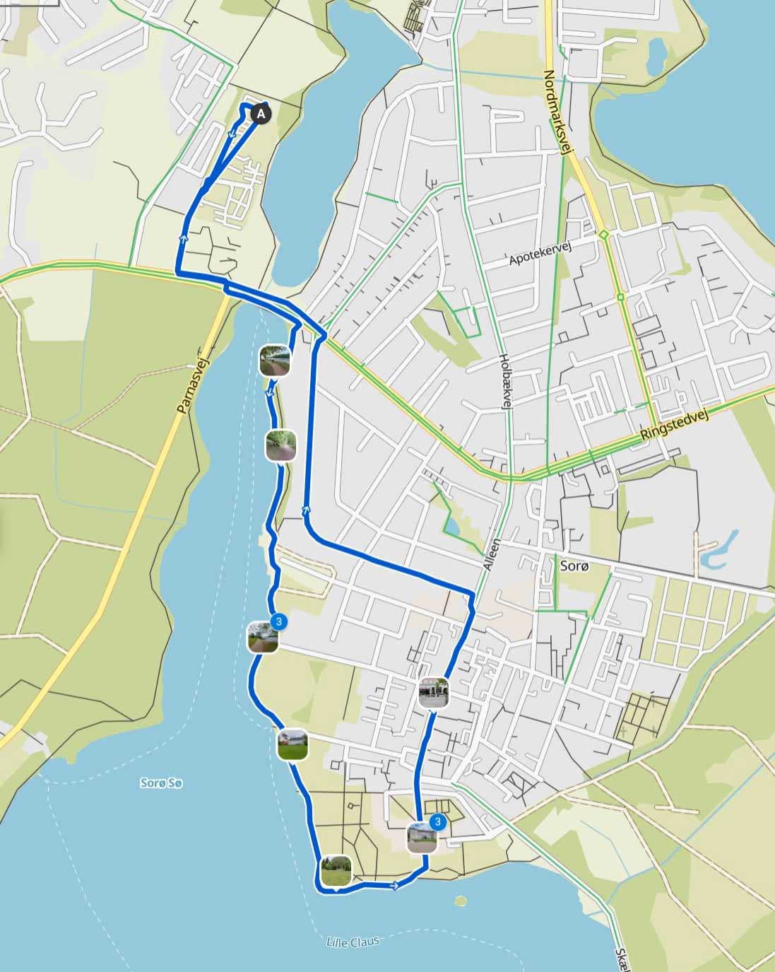 … am Park der Akademie Sorø und der Klosterkirche entlang in die City.