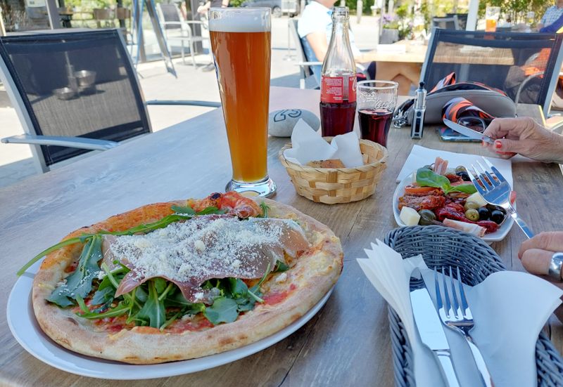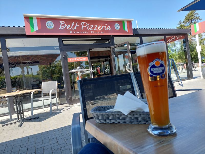 Gespeist wird heute in der Belt Pizzeria beim Campingplatz nebenan. Danach wieder faul sein.