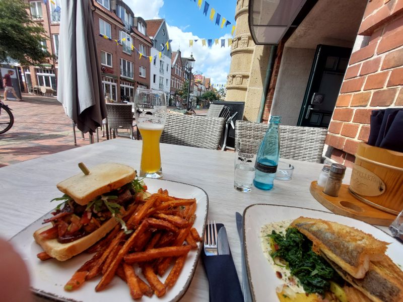 Bei strahlendem Sonnenschein gibt’s ein Begrüßungsbierchen und -Käffchen und dann geht’s in die nahe Altstadt.
