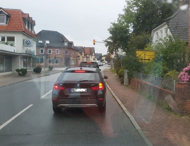 Heute Nacht hat es ordentlich geschüttet und es regnet immer noch. Wir wollen weiter nach Stade, das sind gute 20 km. Am Ortsausgang von Bremervörde ist die B 74 nach Stade gesperrt und wir müssen der U 9 folgen. Nach einer halben Stunde zeigt das Navi bis nach Stade 24 km an! Ich halte an und wir überlegen, wie es weitergeht. Es regnet immer noch und soll die nächsten Tage auch so bleiben. In 2 Stunden wären wir zu Hause. Also Abbruch und heimwärts.