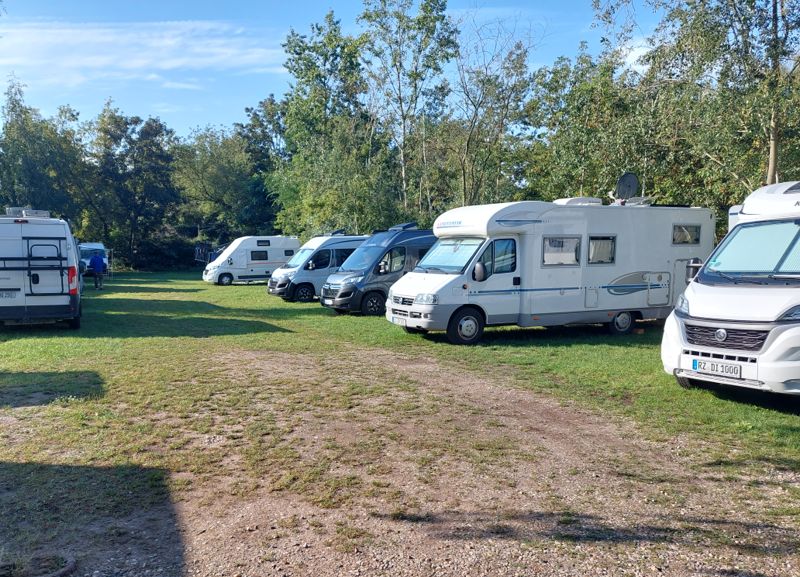 Gestern Nachmittag war ganz schön was los, der Stellplatz füllte sich zusehends. Aber abends gab’s doch noch freie Plätze und heute Morgen reisten sogar ein paar Womos ab.