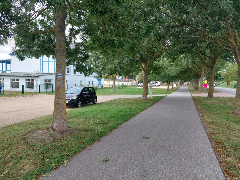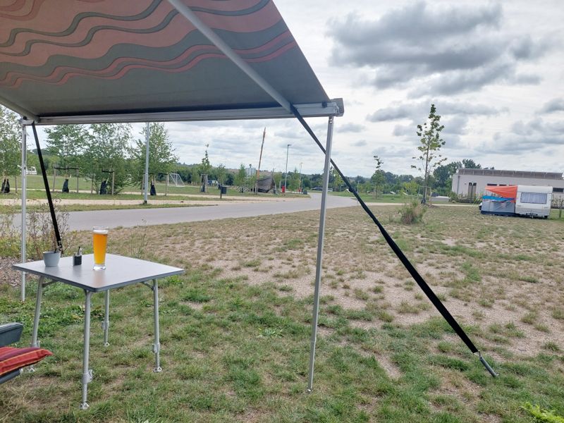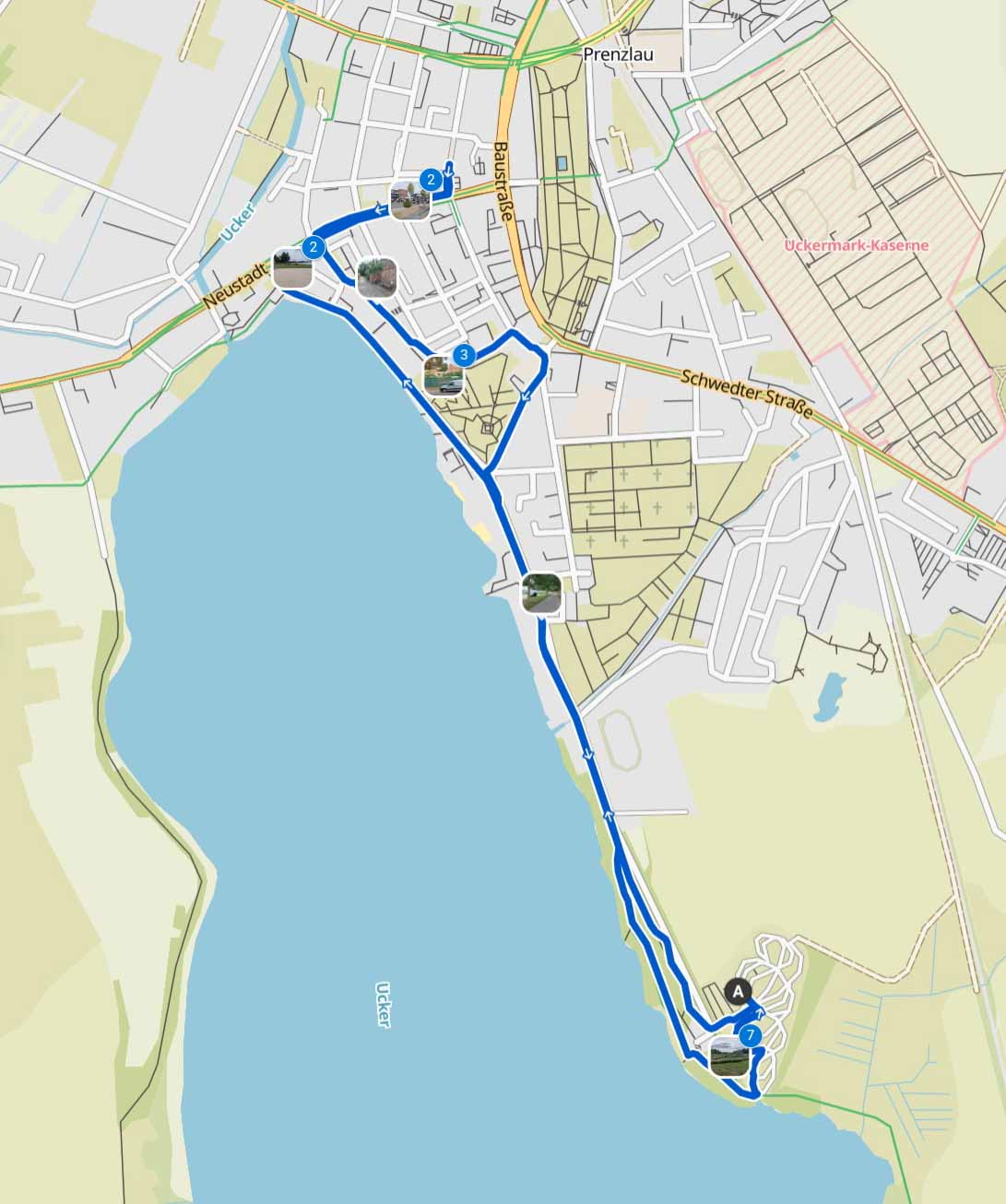 In Prenzlau gibt’s einen neuen Campingplatz stadtnah am See, toll angelegt aber noch etwas trist, es fehlt noch Bewuchs. Leider sind die Plätze so schief, dass Keile nicht ausreichen!