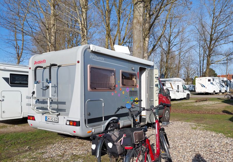 Es ist frisch, aber die Sonne scheint und es soll die nächsten Tage so bleiben – auf nach Scharbeutz. Der Stellplatz ist ganz schön voll, aber wir finden noch einen schönen Platz mit Empfang.