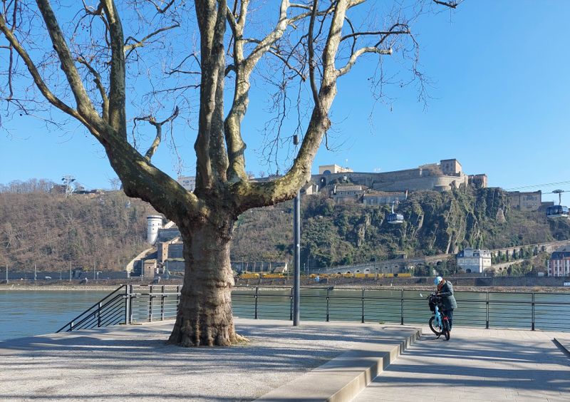 Gegen Mittag geht’s über die Balduinbrücke in die City. Die Moselbrücke hat zwar Fahrradstreifen, aber das wars dann auch schon für Radfahrer. Wahrscheinlich sind wir durch Dänemark und Holland zu verwöhnt.