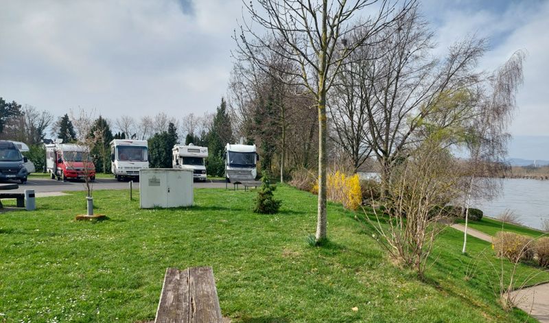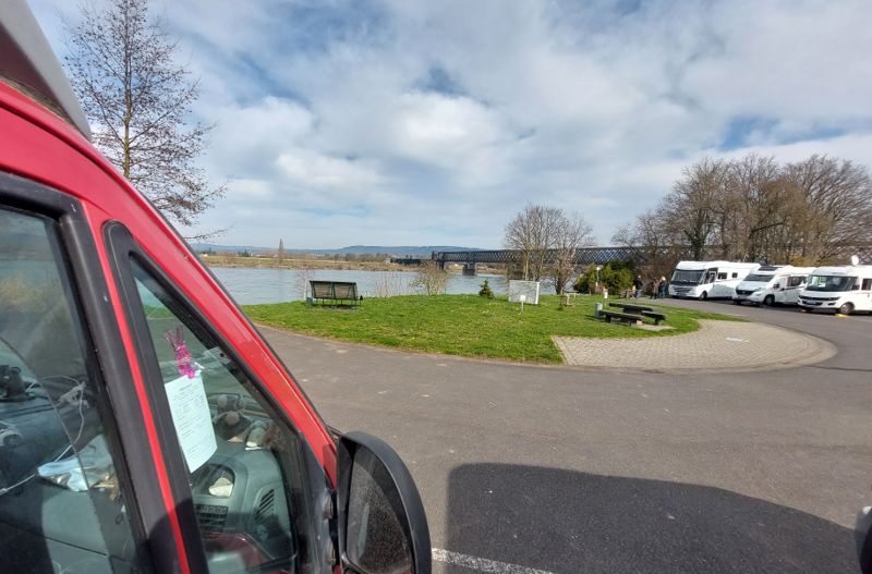 Wir landen 11 km weiter in Urmitz, ein kleiner ruhiger Ort am Rhein. Auf dem halbrund angelegten Womo-Stellplatz ergattern wir sogar noch einen Platz in der 1. Reihe mit Blick auf den Fluss.
