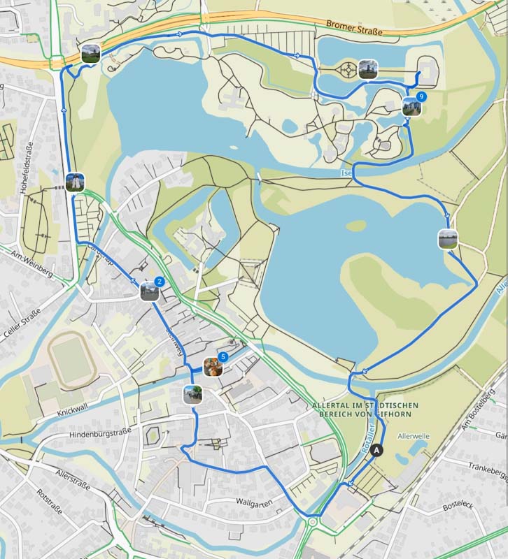 Es geht weiter an der Aller entlang bis nach Gifhorn auf den Stellplatz Allerwelle direkt neben der City.