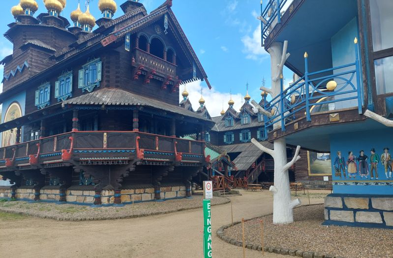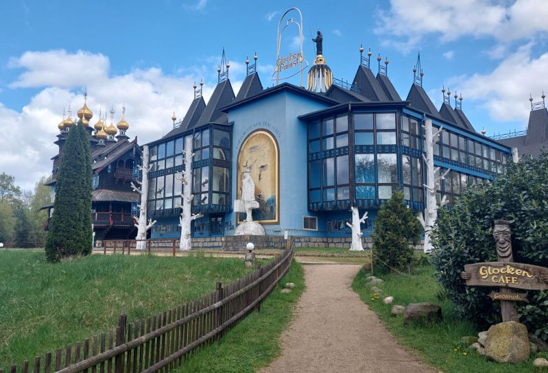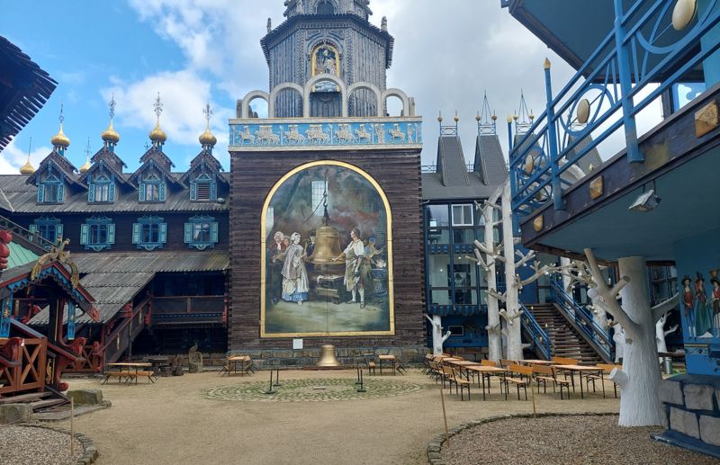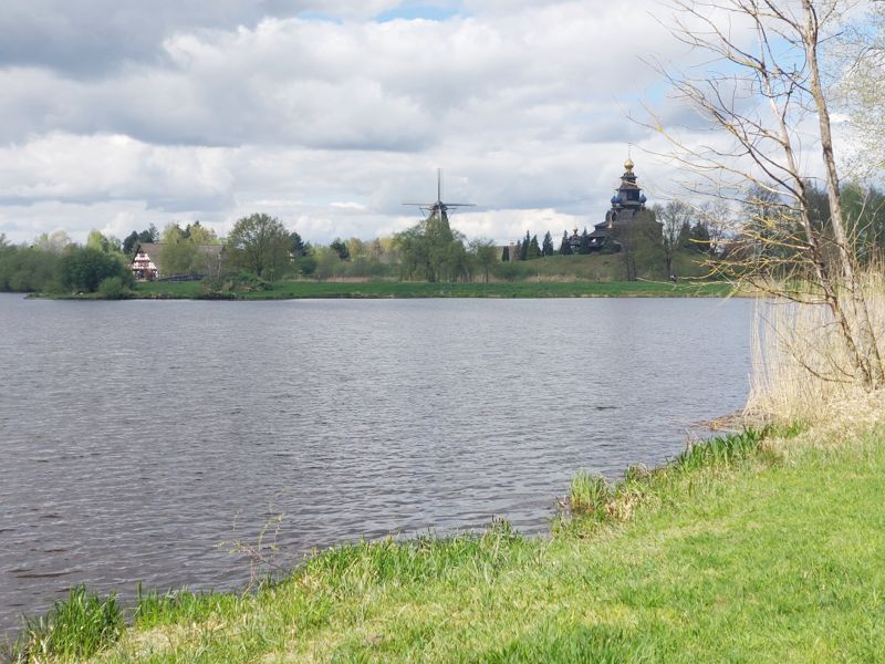Zur Verdauung radeln wir ums Mühlenmuseum mit dem Glocken Palast und der Kirche des Heiligen Nikolaus.
