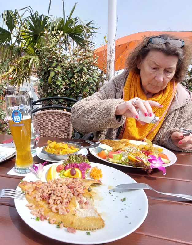 Mittags geht’s zum Hafen, wir essen im Restaurant Compass. Die Lage direkt am Wasser war Super, die Scholle und das Fischfilet waren ok.