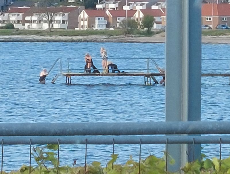 Ab 07:00 Uhr herrscht reger Badebetrieb, überwiegend ältere Däninnen.