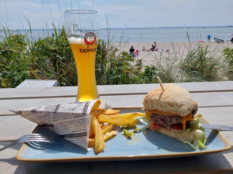 Nach einem ausgiebigen Frühstück geht's weiter nach Altenteil. Ich habe die letzten beiden Plätze in der 1. Reihe für 2 Tage auf dem Campingplatz Ahoi Camp ergattert. Und bei dem Ausblick gibt's natürlich was zu Futtern am Womo. Heute ist nur Faulenzen und Baden. Und Abends noch'n Spaziergang. Was fürn Sonnenuntergang.