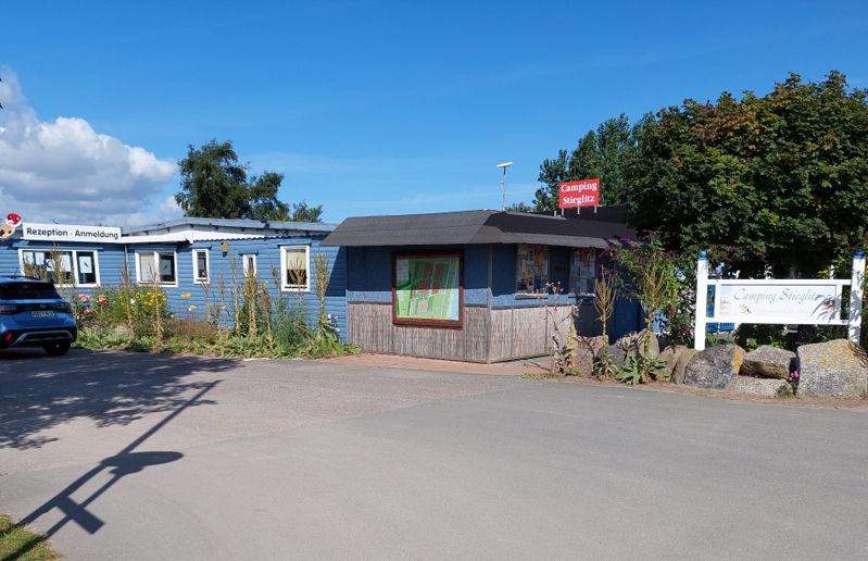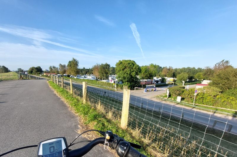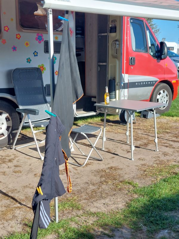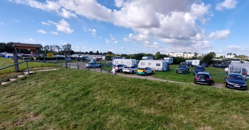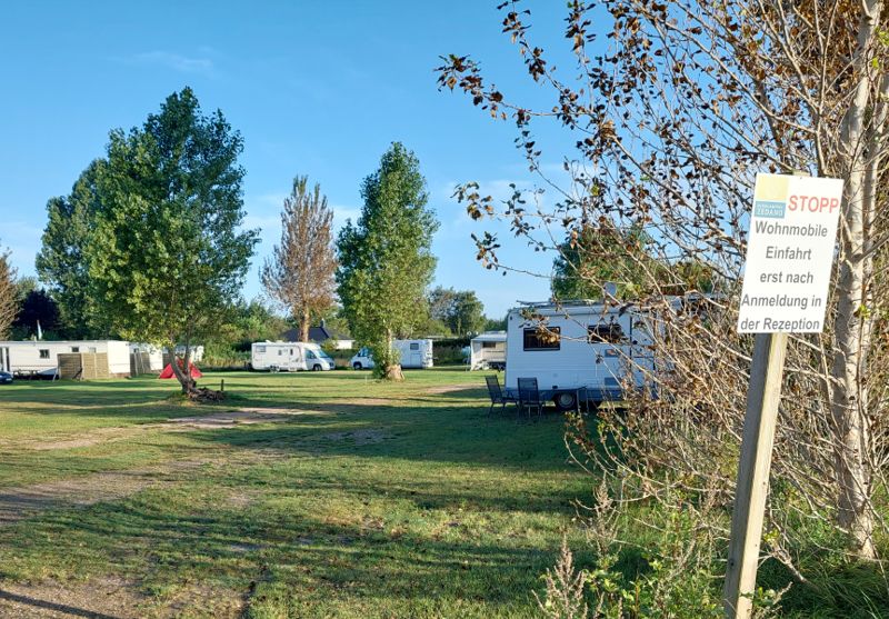 Brötchen gibt’s erst um 07:30 Uhr. Also fahre ich erst noch ein Bisschen rum. Der Campingplatz hat am nördlichen Ende vorm Erfurter Platz noch eine Wiese nur für Womos ohne Strom und Sanitär.