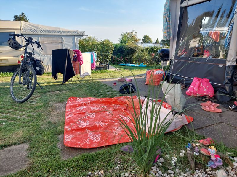 Heute soll’s ordentlich heiß werden, also ab in den Schatten. Da im Gegensatz zu Dahme hier wieder ein einigermaßen Netz ist, kann ich endlich mein neues Spielzeug ausprobieren, eine Tastatur für mein Ipad.