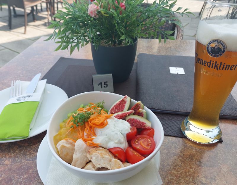 Aber erstmal geht’s ins gegenüberliegende Restaurant Kornhaus. Die asiatische Bowl ist ok, eine 3+, aber bei weitem nicht so gut wie die in Pelzerhaken im Beach House.