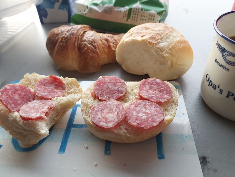 Heute gibt’s Brötchen vom richtigen Bäcker, und wie es sich im Osten gehört: mit Schlange stehen.