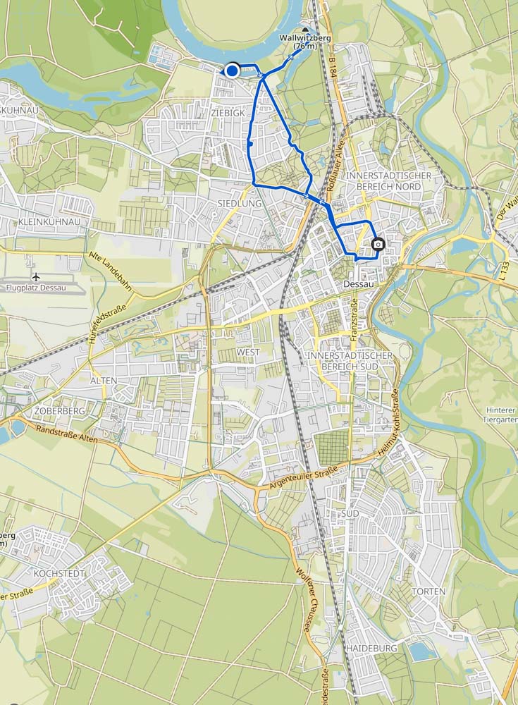 Nach einer kurzen Pause geht’s auf die Suche nach einem Bäcker und einen kurzen Abstecher in die City. Dessau ist doch ganz schön groß, aber viele Radwege.