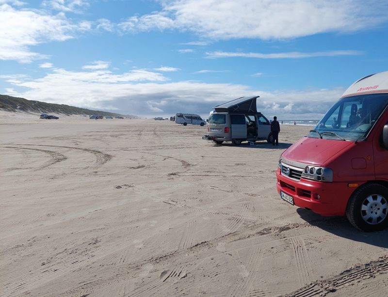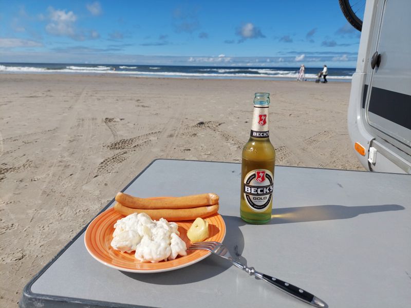 Und dann geht’s zum Strand, mit dem Womo unmittelbar ans Wasser, einfach nur herrlich!