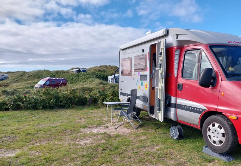 Zurück auf dem Campingplatz muss ich das Womo seitlich hinstellen, der Wind hat auf Nordwest gedreht.