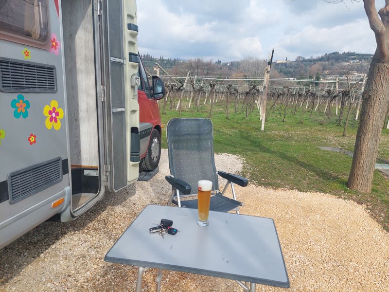 Es ist einfach nur herrlich, die Sonne lacht, es sind 15 °C und der Stellplatz Agricampeggio Terra e Sogni auf einem Weingut in Bardolino ist toll. Das Strecke machen hat sich gelohnt!
