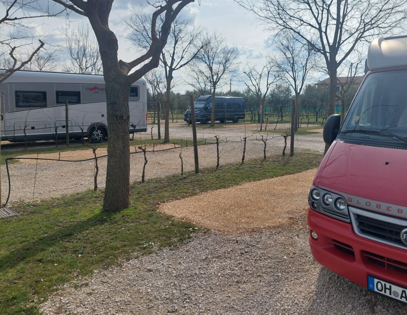 Der Campingplatz San Nicolo, auf dem wir früher immer waren, öffnet erst am 28. März.