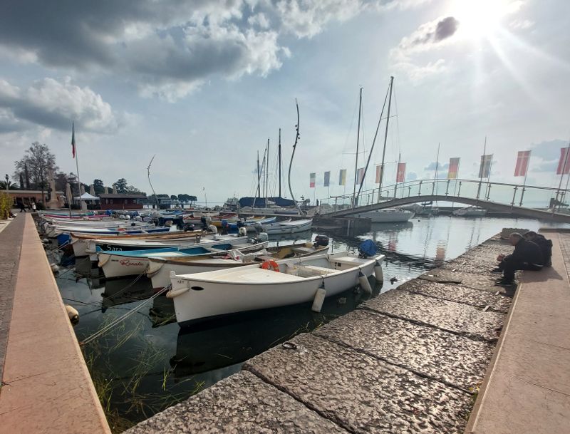 Früh morgens schneit es leicht. Nach dem Frühstück noch schnell eine Gasflasche bei Toom getauscht. Und dann geht’s los Richtung Gardasee – bei strahlendem Sonnenschein. Ich komme gut über den Brenner, zwar viele LKW aber kein Stau. Ich habe die Maut und die Gebühren für den Pass vorher im Internet gebucht, ganz easy.
