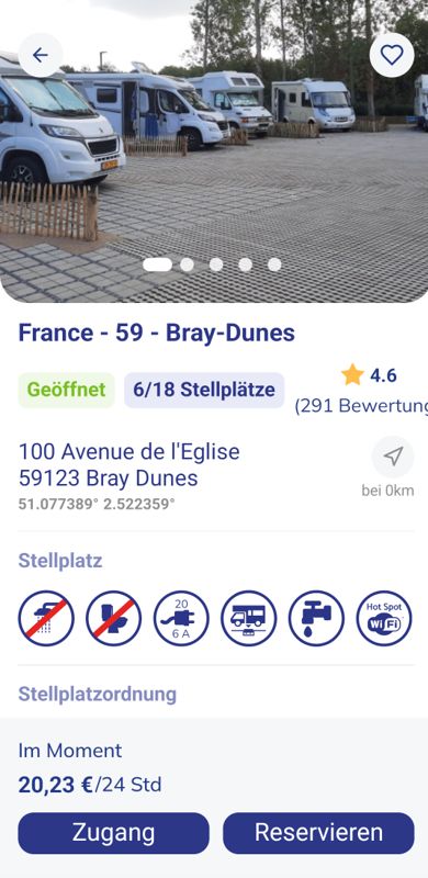 Ich will heute ein paar Kilometer in Richtung Heimat machen. In Dünkirchen muss man für mindestens 2 Tage buchen, außerdem sind sie auch ausgebucht. Einen Ort weiter in Bray-Dunes kurz vor der Belgischen Grenze sind laut Camping-Car Park auf dem Stellplatz noch Plätze frei.