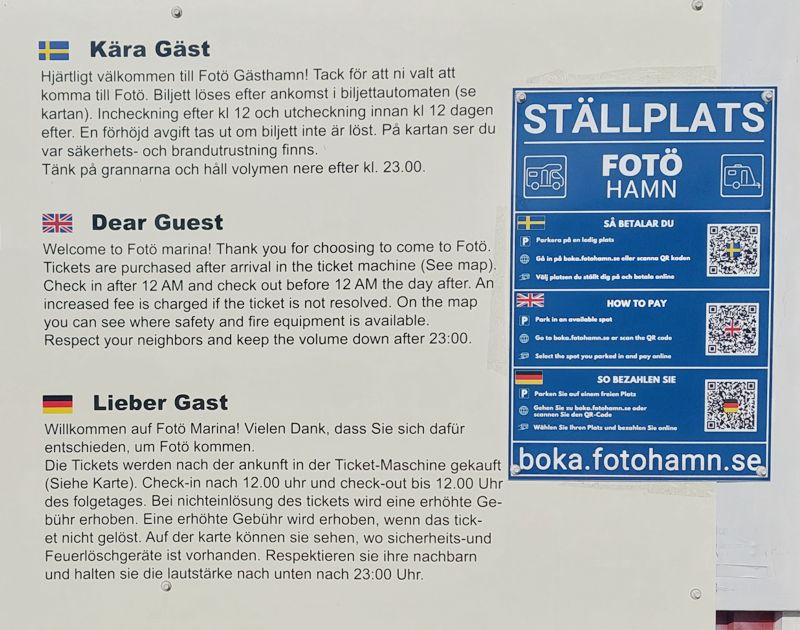 Der Stellplatz im Hafen von Klåvan auf der Insel Hönö hat eine gute Lage, die Plätze sind aber recht eng. Ich fahre weiter auf die Insel Fotö. Der Stellplatz hier hat einen tollen Blick auf die Schären.