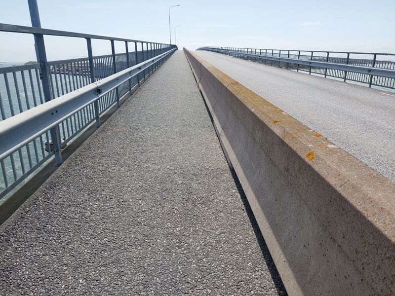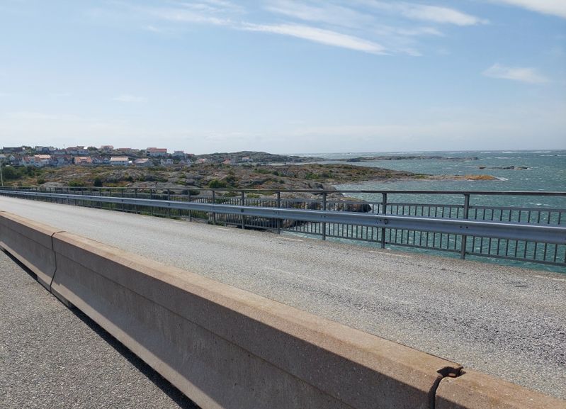 Ich will es einfach mal wagen und bei Windgeschwindigkeiten von 55 bis 75 km die Brücke rüber zur Nachbarinsel Hönö mit dem E-Bike austesten. Und es geht, nicht ganz ohne, aber durch die Begrenzungsmauer auf der Brücke geht’s, mit einem einfachen Fahrrad nicht zu schaffen.