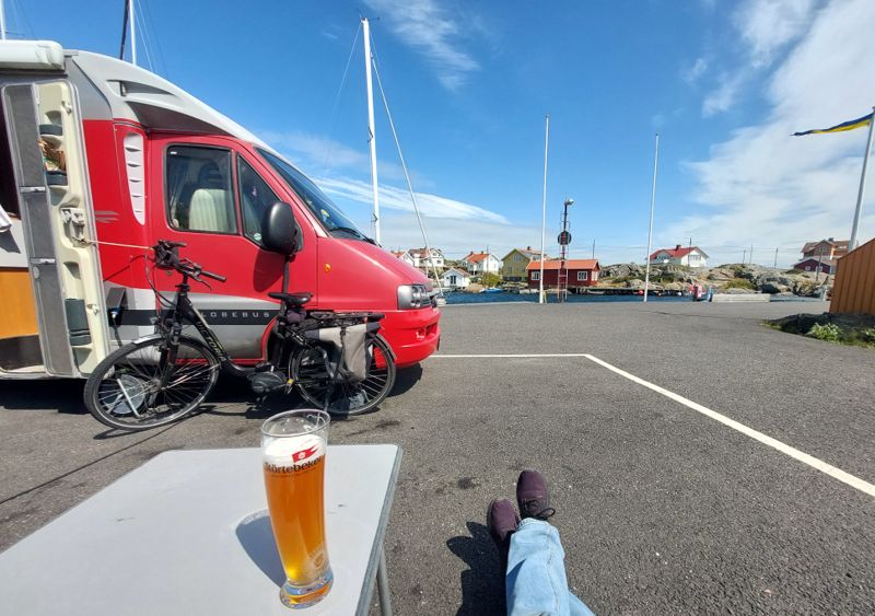 Auf Hönö steuere ich die Promenade im Süden der Insel an. Im Restaurant Tullhuset ist ordentlich was los, wohl alles Schweden, irgendwie gibt’s da ein Lunch Menü. Ich kann den Kellner nicht verstehen, sage ihm „I’m hungry“ und er freut sich und sagt ok. Der Kabeljau mit Krabben ist sowas von lecker, und der Weißwein erst!