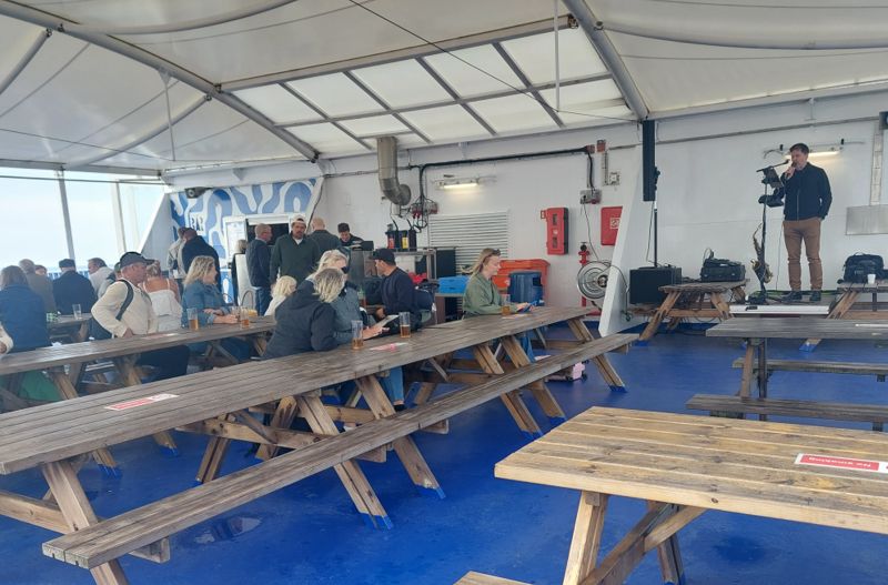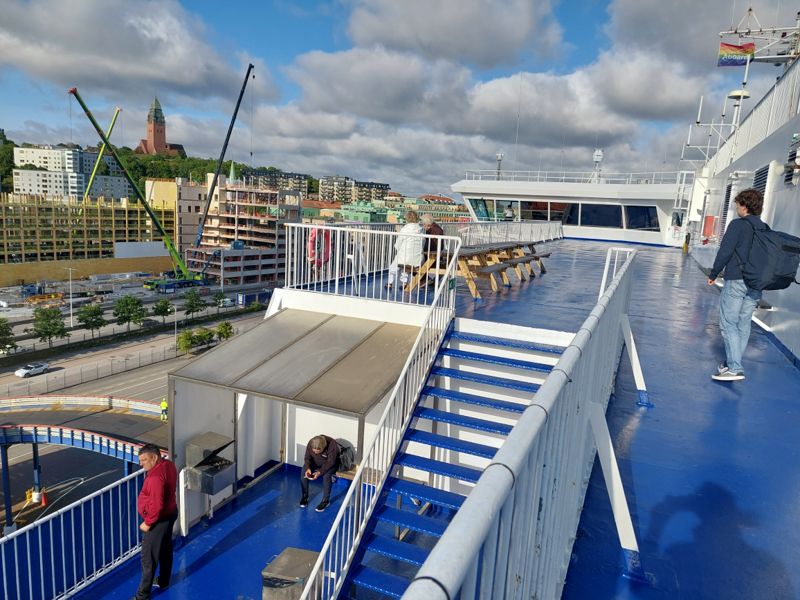 Diesmal dauert die Überfahrt zum Glück nur 3,5 Stunden, trotzdem eine Ewigkeit und totlangweilig. Und wenn ich das Ein- und Auschecken dazu rechne, bin ich 6 Stunden unterwegs. Viele Skandinavier geben sich hier an Board die Kante, das Bier ist relativ günstig, fließt in Strömen und das „Sonnendeck“ besteht aus einer Bar mit Livemusik.