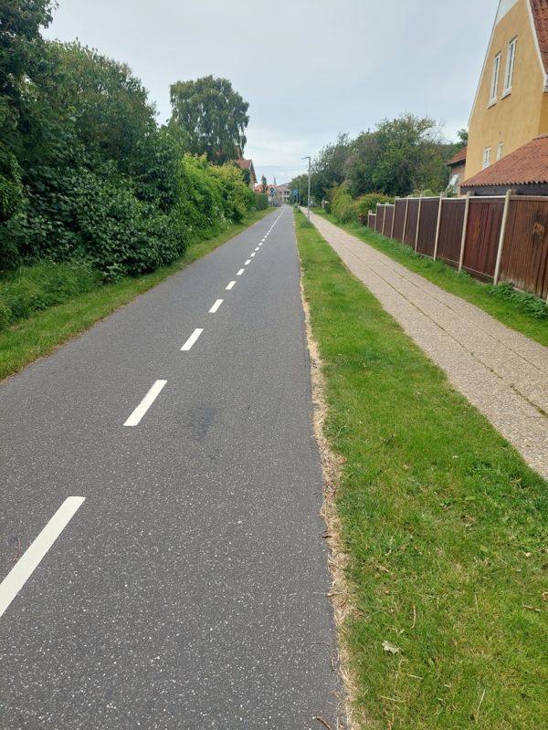 Nachmittags begebe ich mich auf die Suche nach einem Bäcker. Quer durch den Ort verläuft auf einer alten Bahntrasse ein Radweg. Die Supermärkte sind alle recht trostlos ohne Backshop. Dann endlich finde ich einen, der hat aber schon zu.