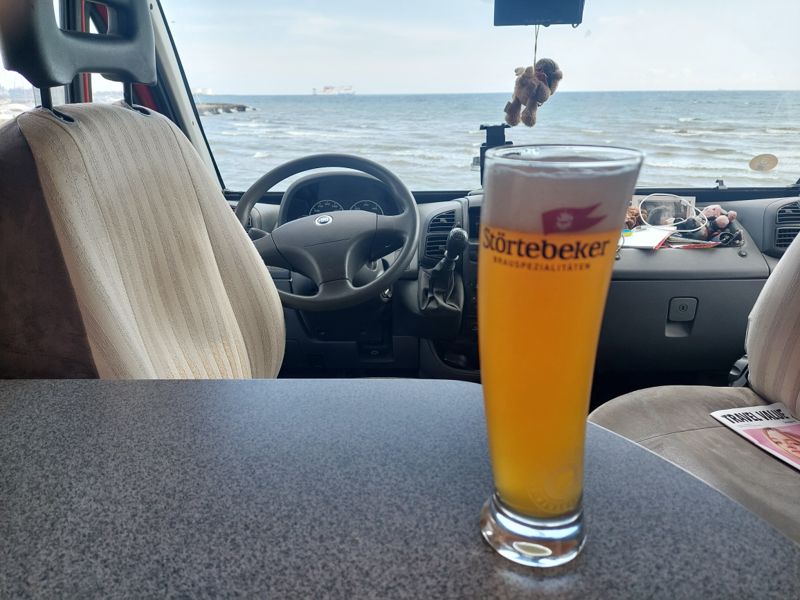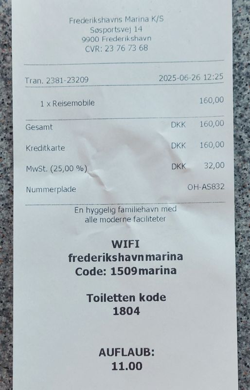 In Frederikshavn steuere ich den Wohnmobilstellplatz gleich neben dem Hafen an, er liegt direkt am Wasser. Hier standen wir 2022 schon einmal.