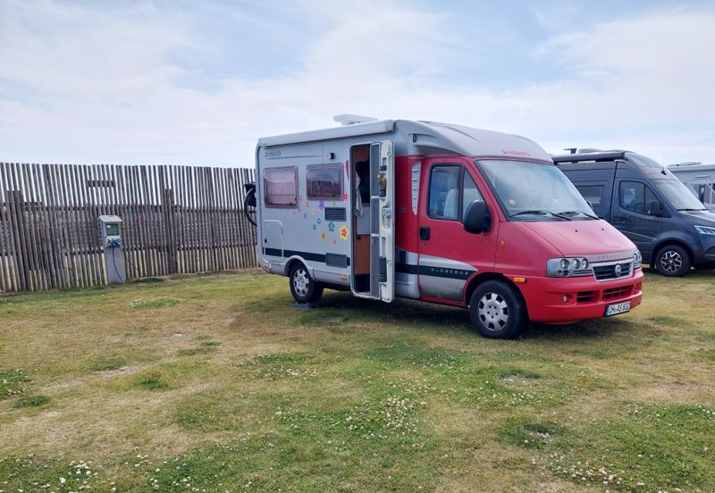 Nach 2 Stunden durchpusten verlege ich dann auf den Campingplatz in Løkken. Hier waren wir vor 49 Jahren mit Freunden zelten, und es hat sich nichts verändert, immer noch ein schlichter, einfacher und cooler Platz, irre!